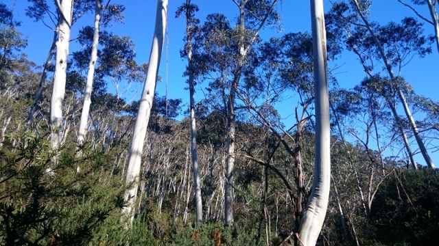 Despite being early, Nuria was already parked on Narrow Neck when we arrived. We soon hoisted packs and where off along the fire-trail that (in 1961) had been bulldozed along the plateau.