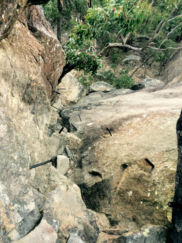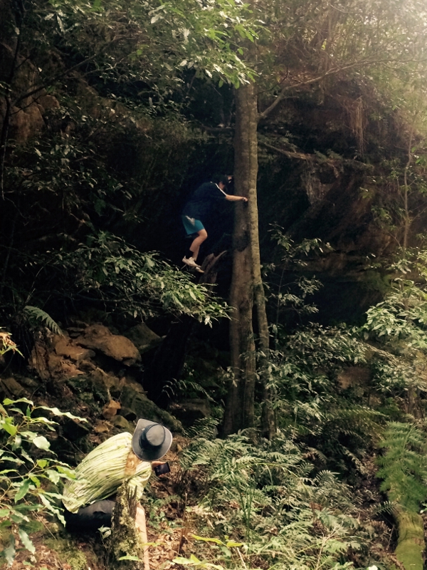 We soon reached a waterfall which looked tricky to get down… luckily there is a coachwood tree complete witha ladder of bolts. I had read that it was a little hard to find from the top, but my limited plant knowledge was to pay off! After climbing a rock and scanning the bluff there was only one obvious spot with a big coachwood; after investigating, sure enough! there it was!
