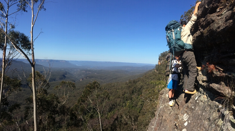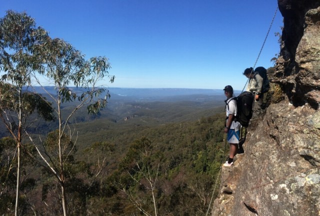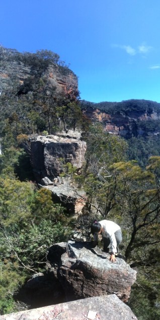 Passing some small overhangs we crossed the creek and headed out along the shale ledge enjoying the Megalong views.