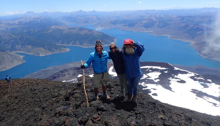 After checking out the lava bridge we scaled the summit and buffeted by the wind sought refuge from the wind. My parents hadn’t realised how big the lake was (we’d only glimpsed a corner on the way up, and I think it must have been a nice way to find out!). As we ate snacks, the three group we’d seen coming a up the standard route made the summit – we could hear their shouts of elation. They rested just above us and before they left we took some photos together.