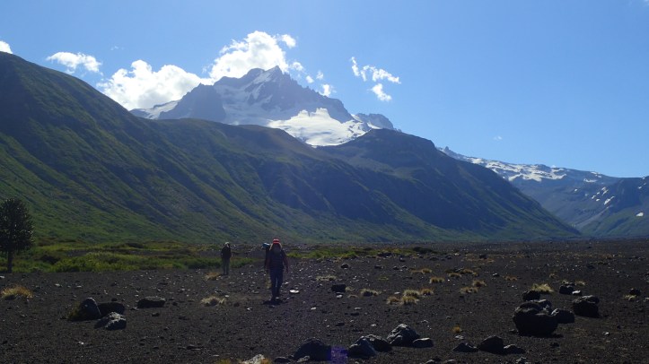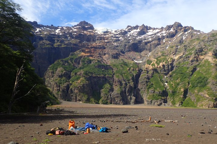 I waited for the others at camp, dozing off and playing a couple of puzzles on my phone. Finally mum arrived and then Jimmy. It was really late now. The plan to summit Antuco and get down to Los Barros was not an option. After some somewhat heated discussion about whether to stay the night or relocate, we crossed back over the river and followed it up the valley.