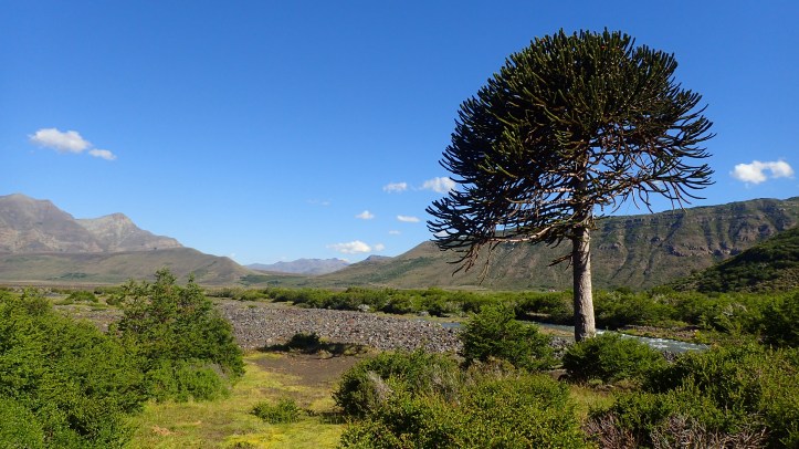 We soon dropped down to the flatlands below soon picking up an obvious road. We crossed a river and soon stopped the lonely araucaria that was our planned camp camp for the night. We left the road and made a beeline for it.