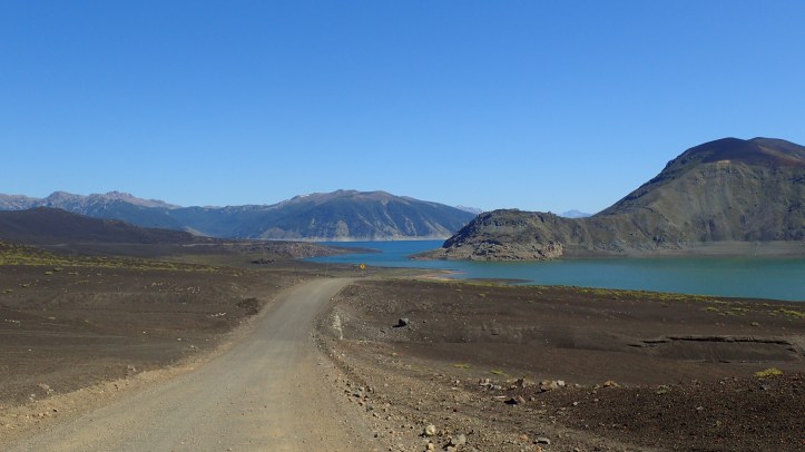 The scenery was fairly bland; farming and pine forestry, the peaks of Antuco and Velluda occasionally visible in the distance. I dozed off while the full bus slowly emptied. Passing the well tended gardens in the town of Antuco the valley deepend, the walls pressing in with obvious volcanic rock on our right. Soon we were dropped off at the intersection to Abanico. We were still over 8km from the TH, but that’s as close as you could get using public transport.