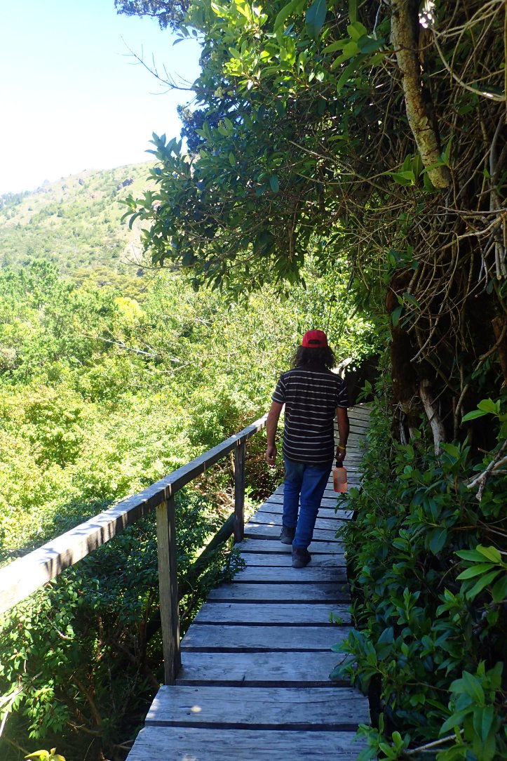 A number of vehicles past heading to Argentina, but in our direction it was very quiet. After several hours of walking we were somewhat seperated. I was supprised when a car pulled up behind me, I hadn’t heard it because of another inconsiderate driver racing past. To my surprise, mum was in the car. There wasn’t room for another person, but they took my bag which was a huge help. We’d already agreed to meet at the start of the waterfall track.