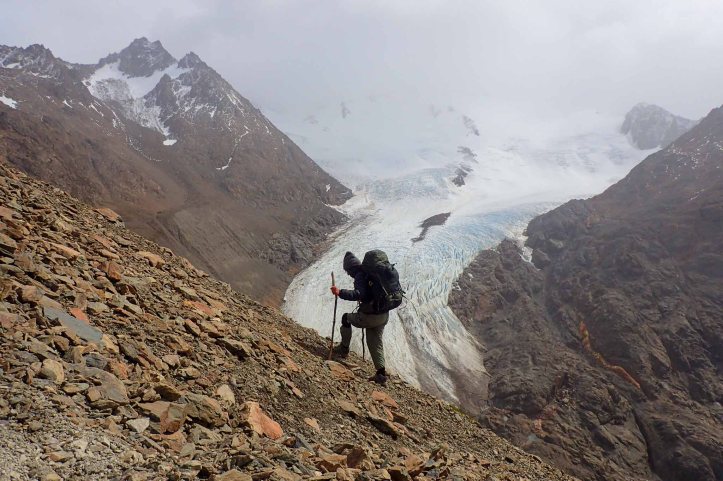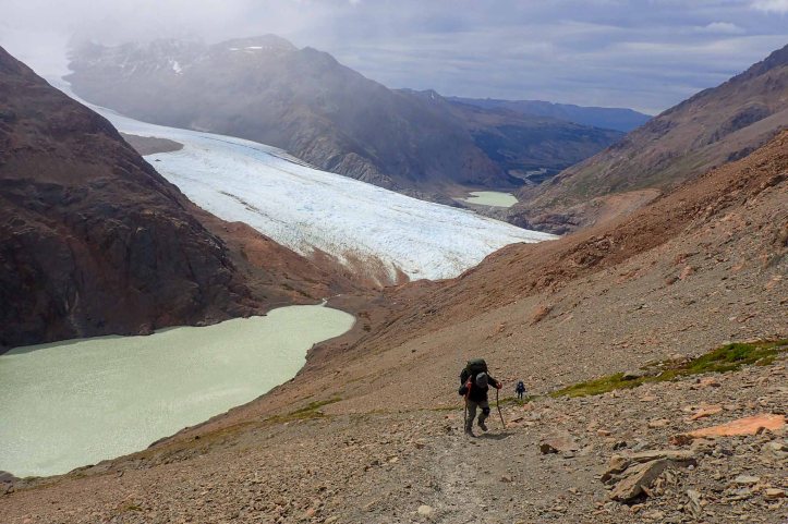 I first heard about this trek from a hitchhiker (Tom Souillure) I picked up in the Northwest Territories just outside of Inuvik whilst on the Dempster up to Tuktoyuctuc. He described it succinctly as «4 days walk along glacier (2 river crossings needing harness)«. I put it in the back of my mind, and finding myself in Patagonia a little earlier than expected (to meet my parents), put it into our trekking itinerary.
