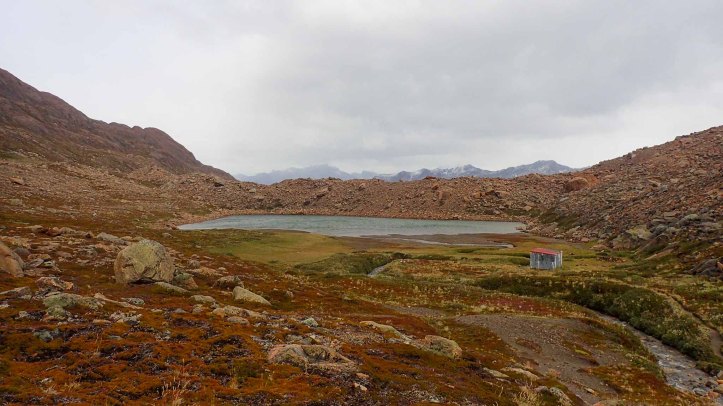 I woke fairly early and was surprised that it was already quite bright. What happened to mum’s alarm? It was calm; the violent wind from the previous afternoon nonexistent. I poked the others awake. They didn’t seem overly interested. «We need to get moving» I stressed. We all new that there would be some bad weather blowing in early in the afternoon. We needed to get over the pass as early as possible (and had planned a hut day the following day). I laid back down mentioning that the inclement weather wouldn’t bother me too much, but hinting at the penalty for leaving late. It worked! Mum sat up, in turn questioning why her alarm had failed. I shook Jimmy and we were up. An hour or so late, but up. We packed quickly, skipped breakfast and were on our way.