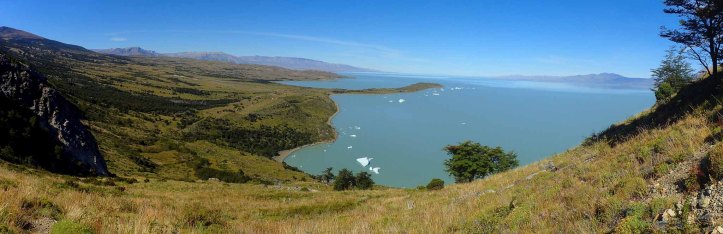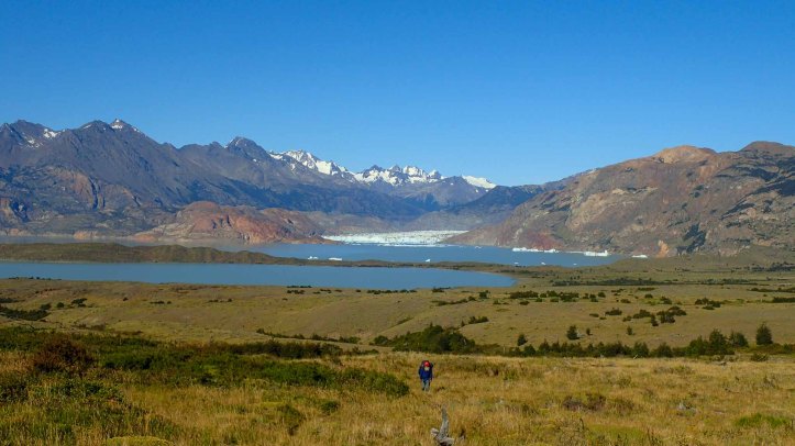 We walked with a British sounding Swede for a time, the track remaining fairly bland. An open meadow offered views over Lago Viedma, a single monolithic iceberg visible in the distance.