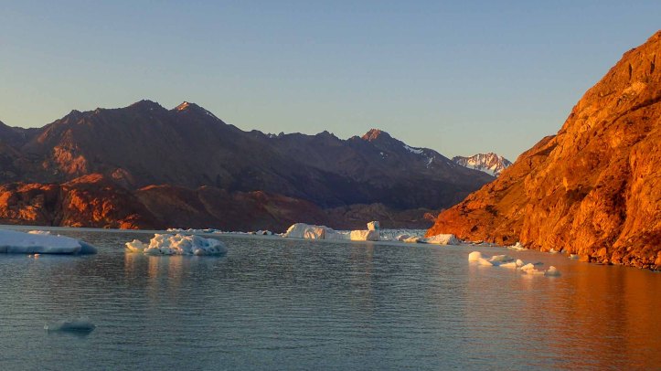 I made it to the popular campamento at Bahia de los Témpanos. It was very crowded, but living up to its name there were a bunch of témpanos floating about. I’d claimed a spot for my parents, leaving my pack at the junction so they’d know I’d wondered down. I sat on the rocky shore for a time soon deciding that if I was going to go for a swim, I’d better do so quick. It wouldn’t be long before the sun disappeared behind the mountain. I handed someone my camera, stripped off and plunged in. It actually wasn’t that bad! I climbed up onto one of the smaller, closer iceburgs, stood there for a moment and then jumped off the back (bottoming out) to compete a lap.