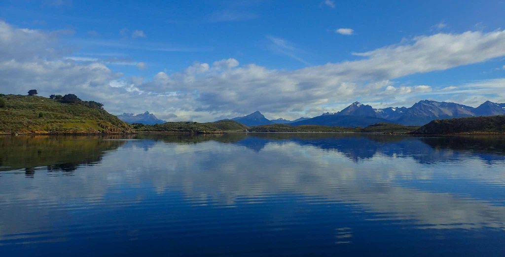 «Dividing the island [of Isla Navarino] in two unequal halves, the craggy Cordón de los Dientes (with peaks rising over 1000m), shelters the narrow northern coast from the southerly storms. The larger southern half of … [the island] is a roadless expanse of subarctic tundra with hundreds of mooreland ponds and the large lakes of Windhond and Navarino.»