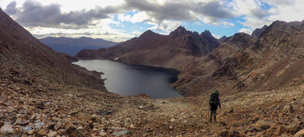 Dropping down the eroded trail in the coarse talus, a newly constructed mirador was a bit of an eyesore on the otherwise amazing vista (another sign CONAF was moving in). I found a couple of suitable, though far from ideal, sites by the lake and set about erecting my tent as the mist rolled in and out of the now mostly dark valley. I cooked up a pot of couscous mush and we quickly retired for the night.