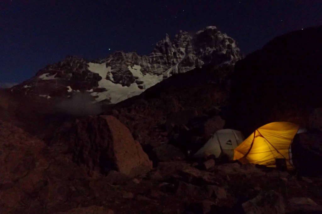 Crossing an open section of alluvial, we were quite close to the Turbio campground, but after some discussion, we decided to camp more in the open to enjoy the mountains.