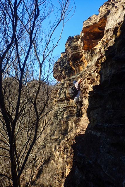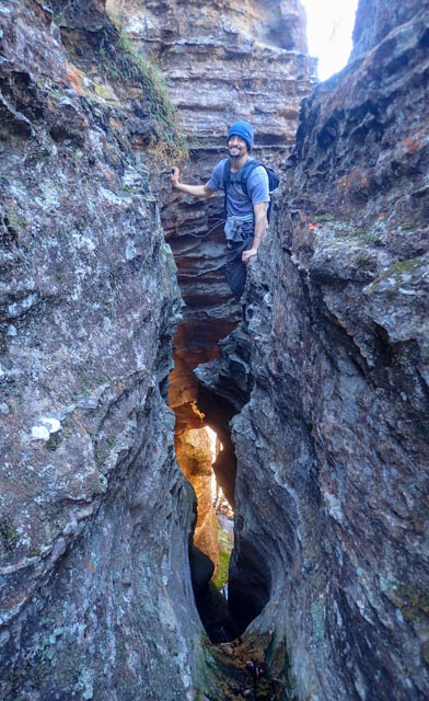 We climbed up to the bottom of the would-be abseil (where Lukas is standing)