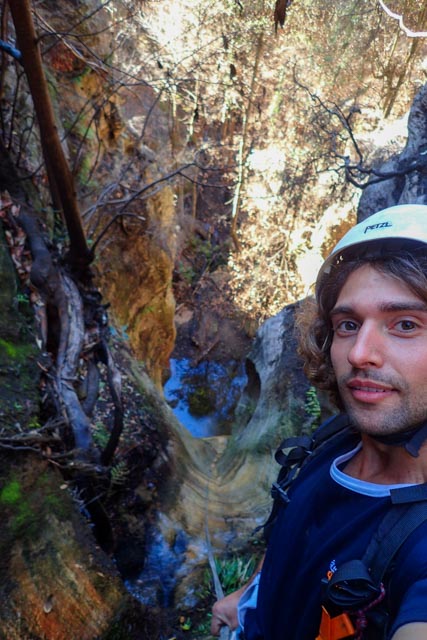 Continuing, we dropped down a small drop that would likely intimidate most and assessed the next drop which was by far the largest and marked the end of the canyon. It also looked easy to avoid by using either of the ledges to our right and left. But the drop looked quite nice so we decided to abseil down.