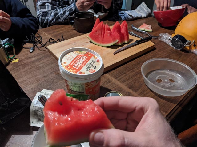 It was pretty late by the time we were down. About 4pm. Alternate plans began to formulate. Caching tomorrow seemed to be the theme. This evolved into camping high as well.