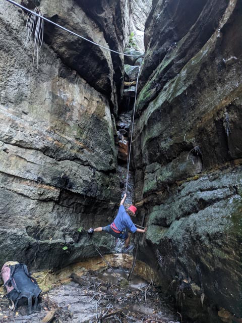 The name came about because Grace carried the rope for us (and additionally, we used her purple tape to build the anchors in the canyon). If she hadn’t joined us, burdened with items for our cache, we probably wouldn’t have explored the canyon.