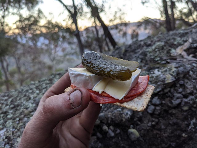 After work I drove to the Mt Vic station, napping until Owen’s train rolled in. I was exhausted from work, but Owen’s jovial personality helped keep me awake. In Lithgow, we spent a couple of hours moving from one supermarket to the next, buying long lasting tasty foods, most of which we planned to bury in two separate holes in the Wollemi National Park.