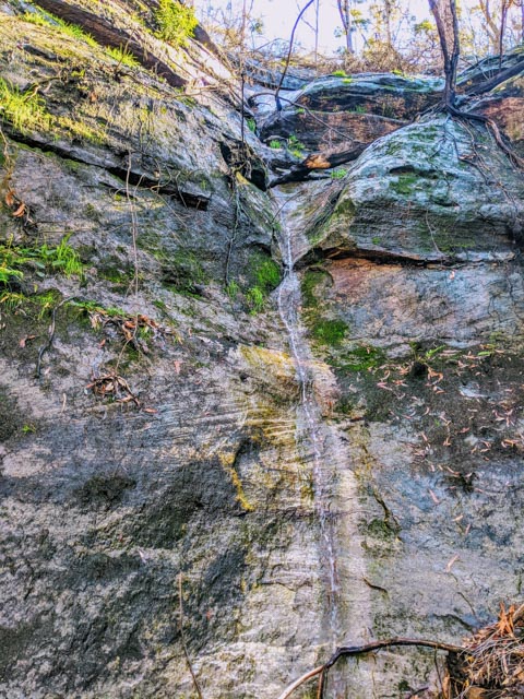 Owen led the way down the creek which dropped consistently but not abruptly as we first expected. A much smaller drop than expected presented itself. Using a small tree as an anchor, I went down hand-over-hand before deciding abseiling would be nicer after all. A quick inspection of the anchor options available for the next drop and the others quickly followed.