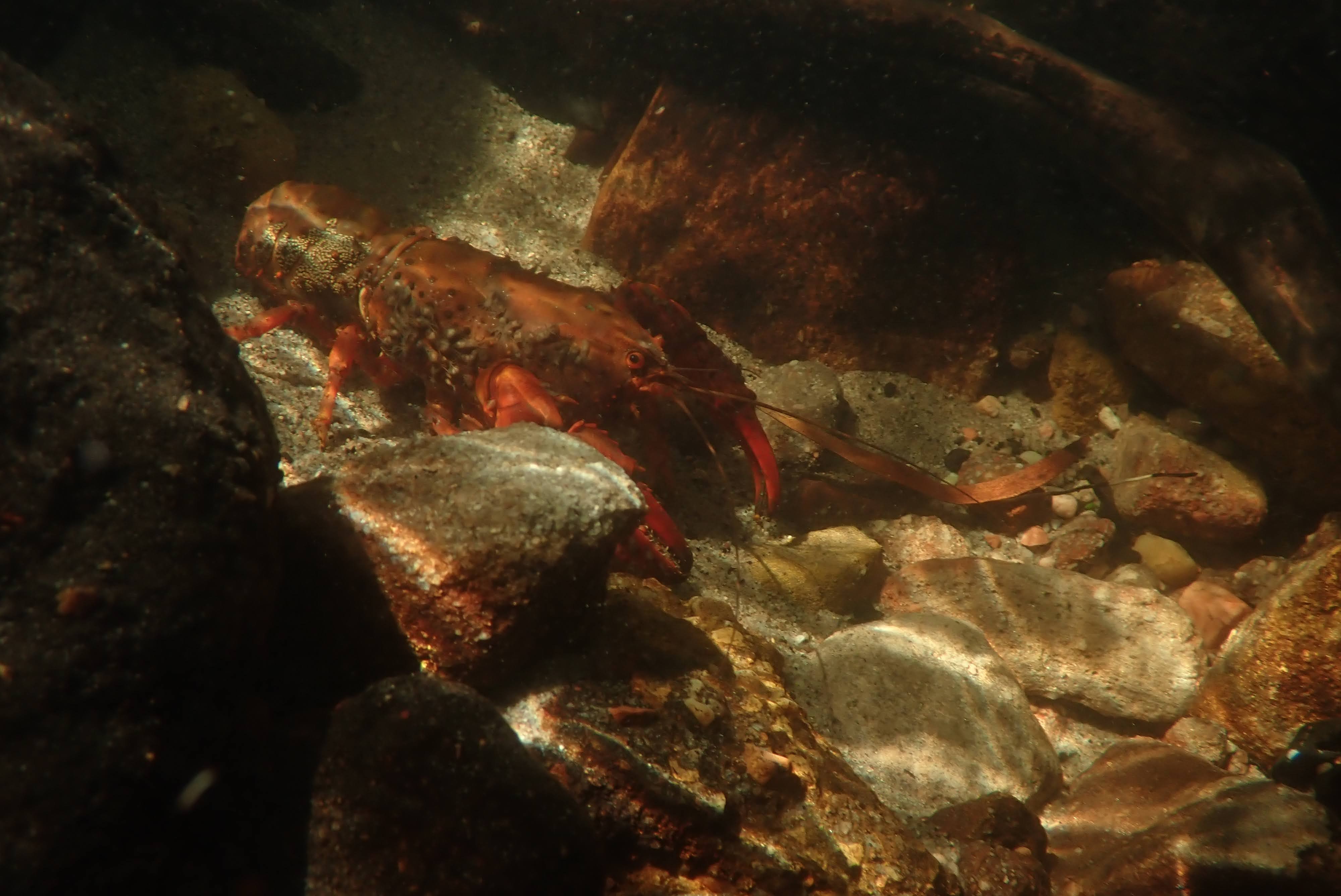 Up the creek we went. The walls began to narrow, a waterfall of fine spray drifting down from one overhanging wall. Trees ran along the other slanting side, reaching upwards almost creating a way out. Mum braved a narrow pool that got deeper and deeper. Deep enough that I decided to bridge across. It didn’t make much difference as I was soon wading to my chest across a pool keeping an eye on a large yabbie. Water was toppling over a small waterfall at the other end. It looked hard to get up. Luckily the wall had broken away creating a convenient alternate route for us to chimney up.