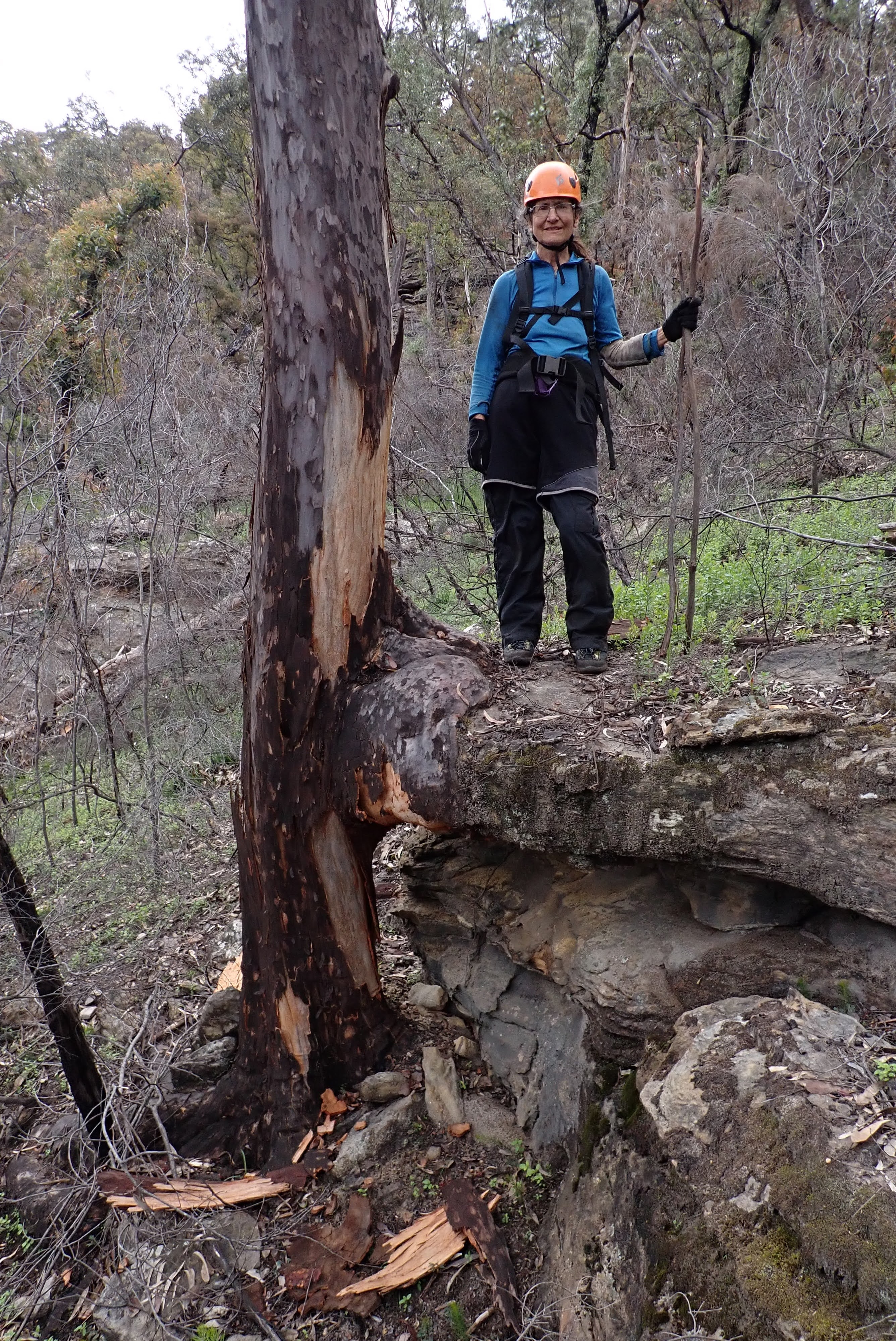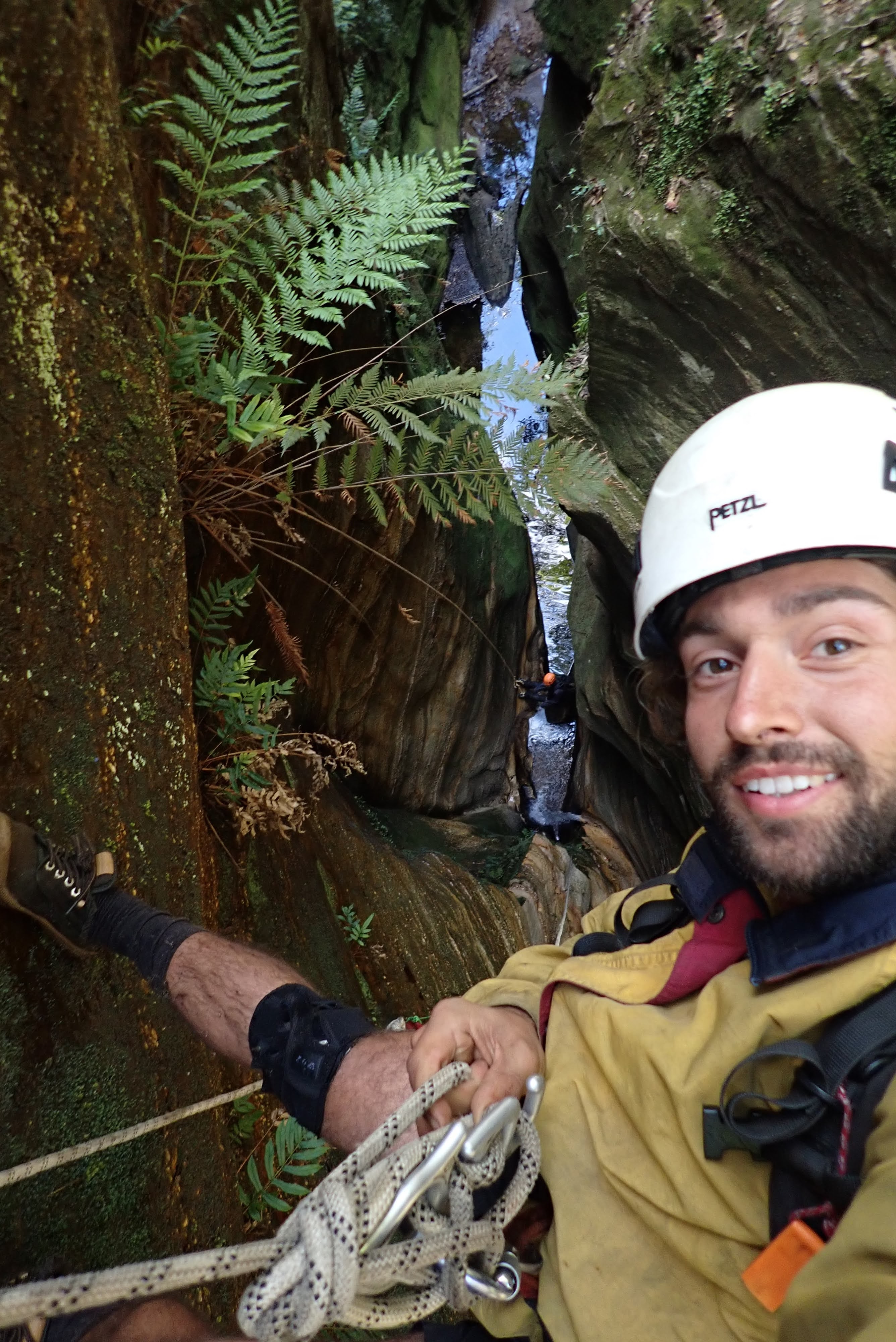 We abseiled about four times before getting into the ck proper. I (Felix) downlimbed the first one and jumped out onto a tree branch and then koala climbed down the trunk. For the rest of the drops we worked up to simul-rapping, first not abseiling simultaneously but just acting as meat anchor at the top or bottom.