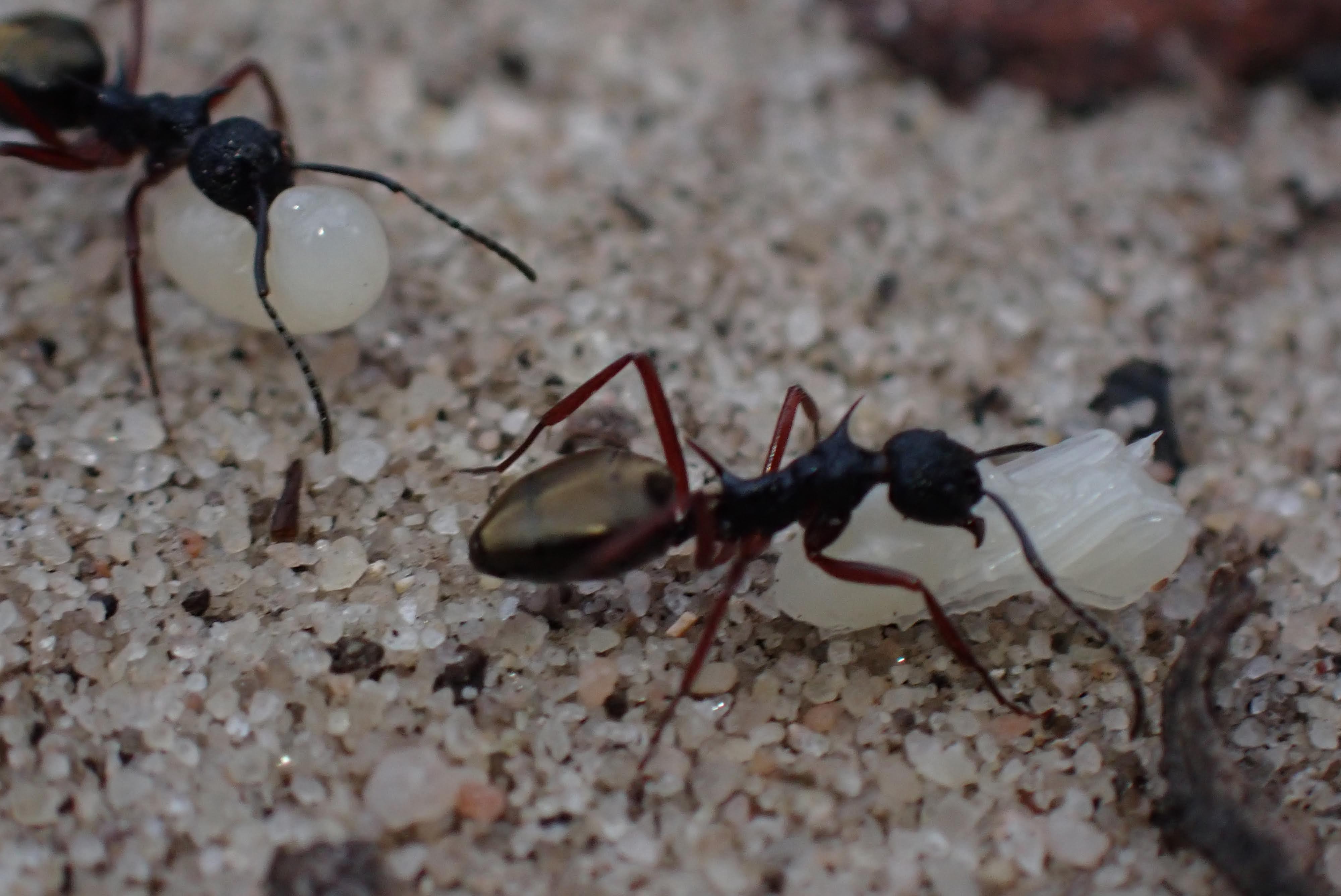 Moving to a new place is no small feat when it comes to ants: after they’ve found a new place that suits them, they have to move all their stuff there, too, not just themselves. That stuff is the young of the colony: eggs, larvae, pupae and newly eclosed (hatched) individuals, both workers, queens and males.