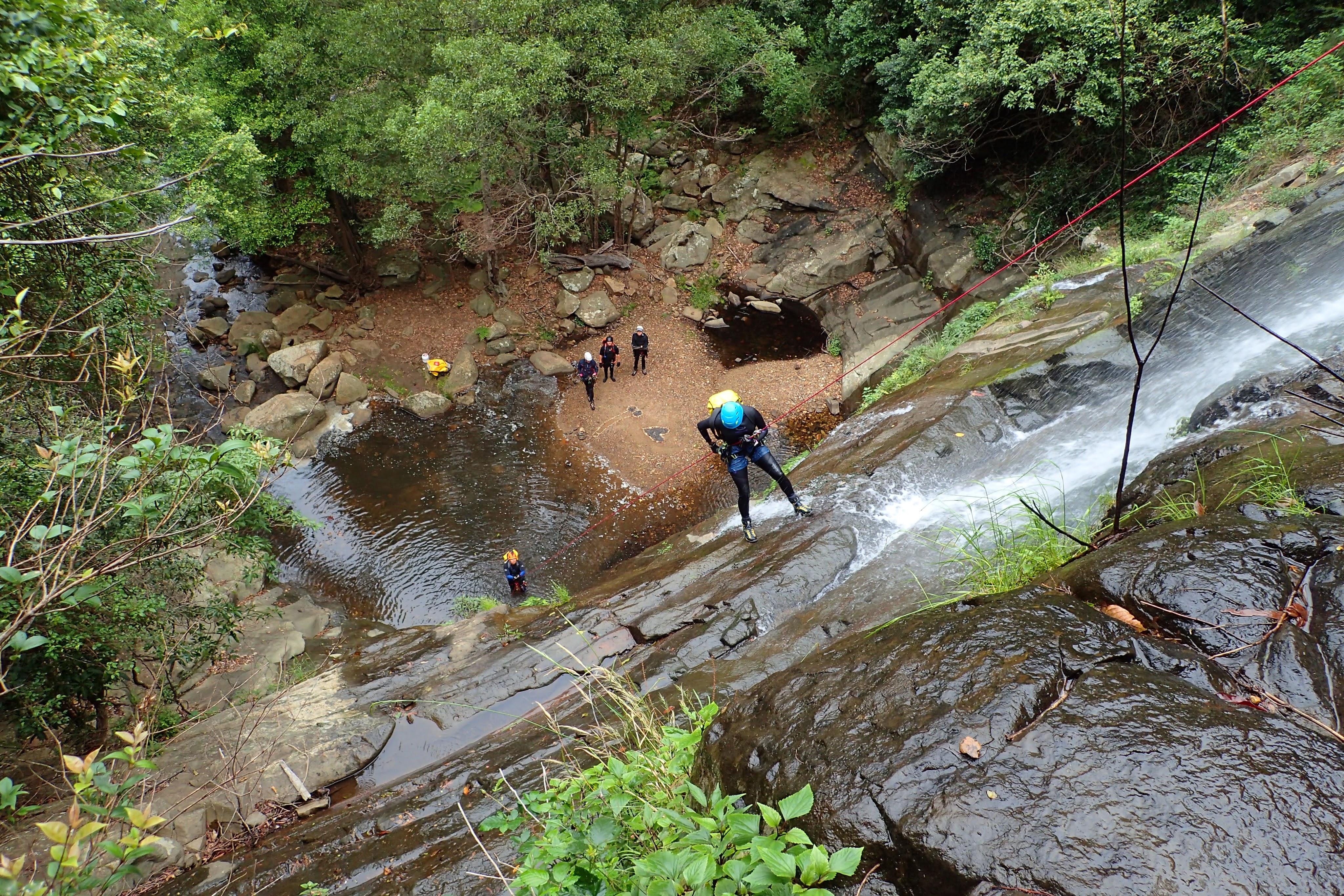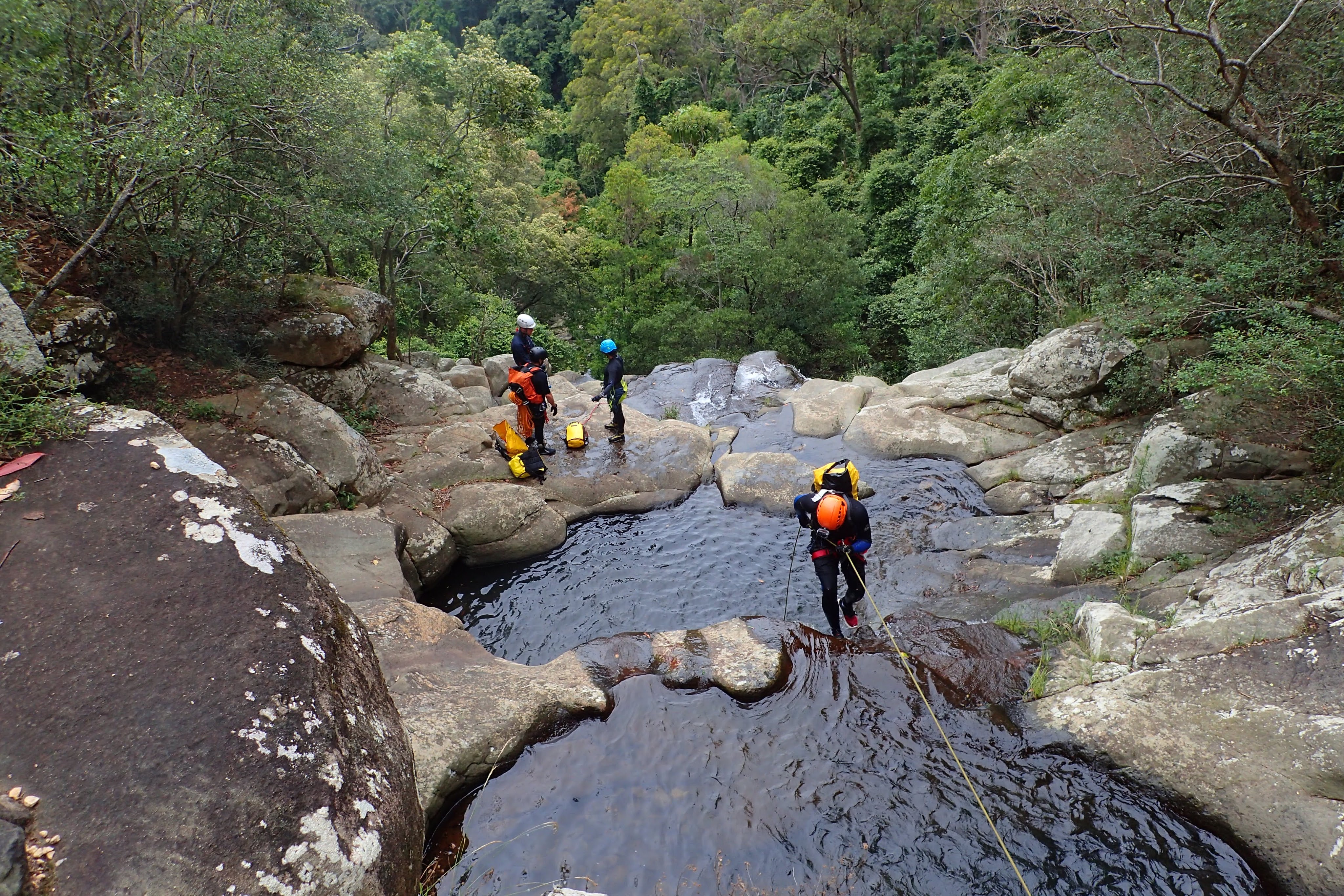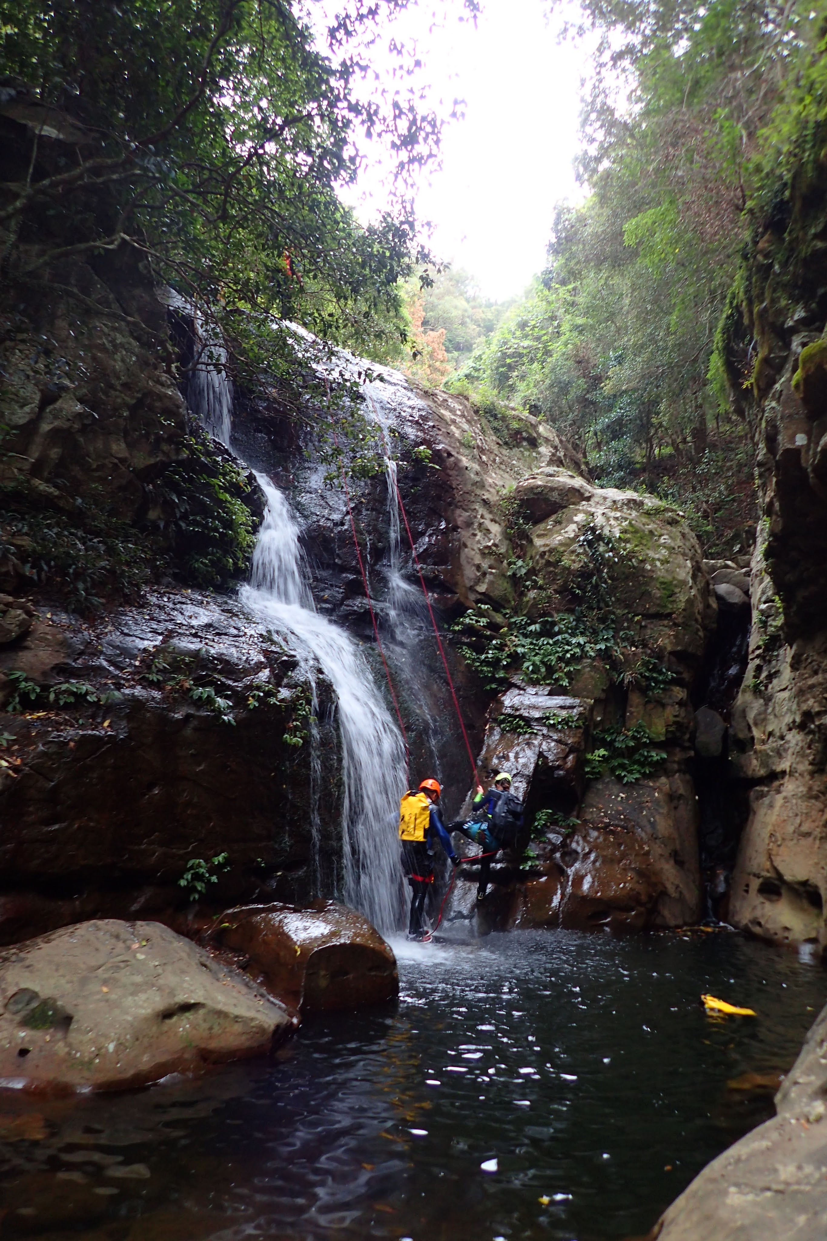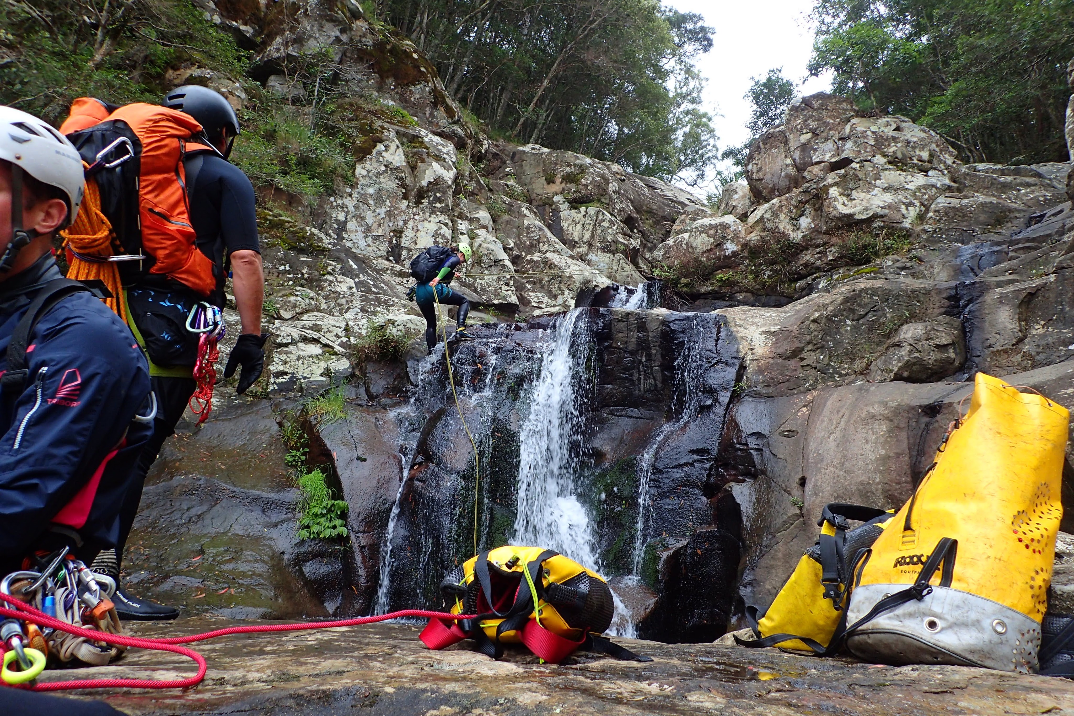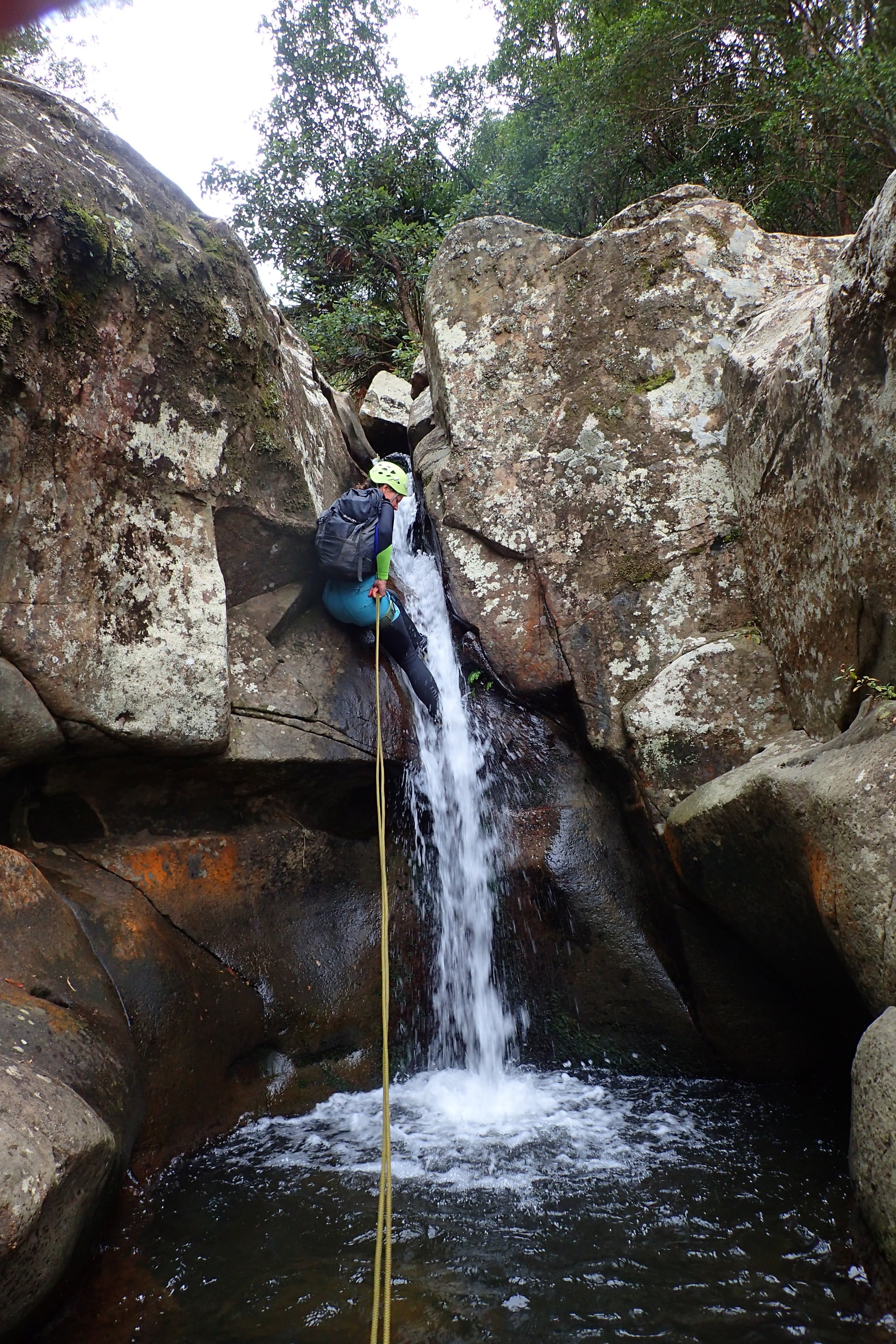 There isn’t really any canyon, but there are a series of 7 picturesque waterfalls. You can escape (or walk around) every drop, so it is a very non-committing mini trip. You can probably do the trip in about 3hrs, with a mixed party of about 6ppl.