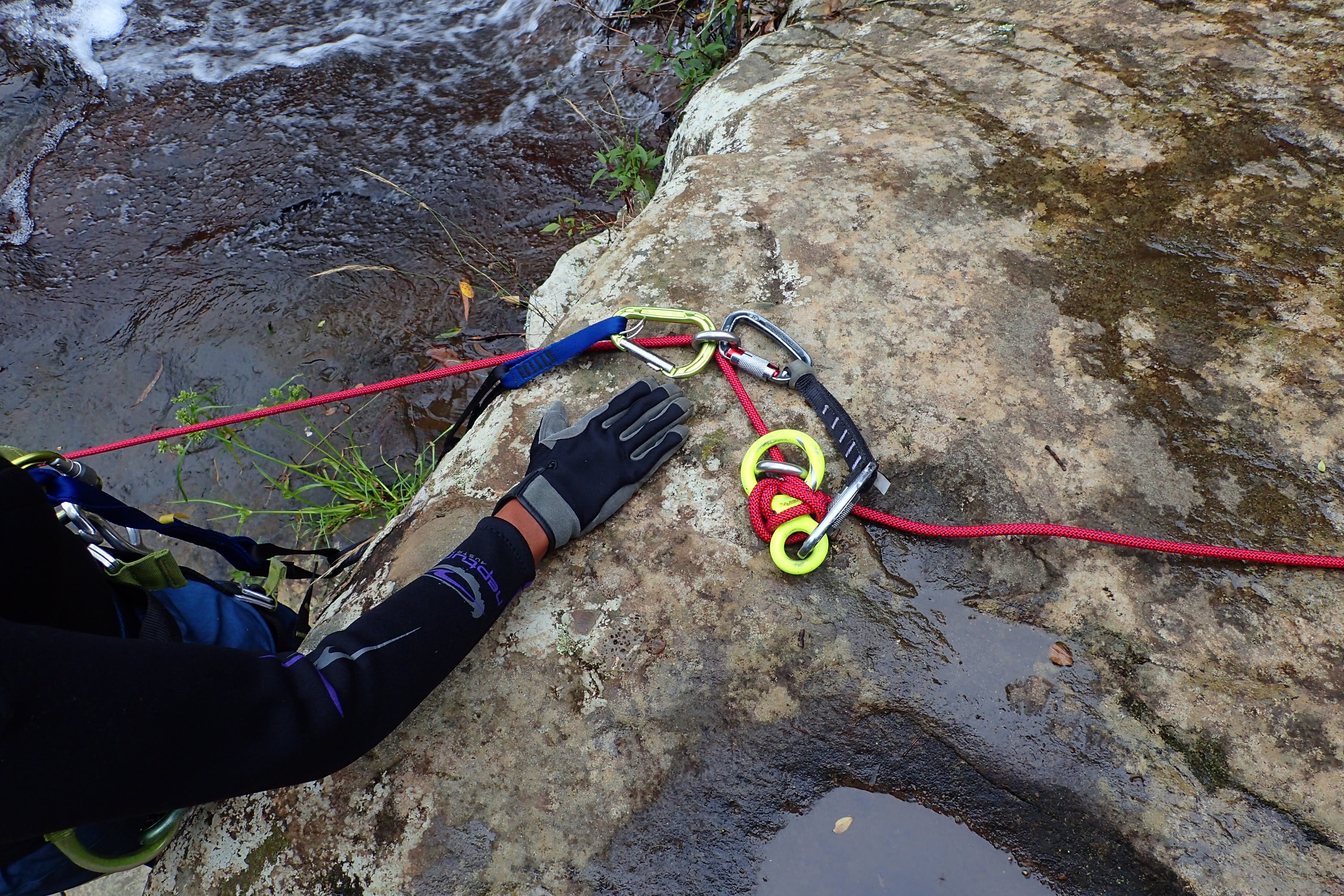 Once we’d gone over some theory, it was time to put everything into practice. Kirstie ran the first station using a Gigi. I climbed around the first drop taking photos which is why there are some odd angles.