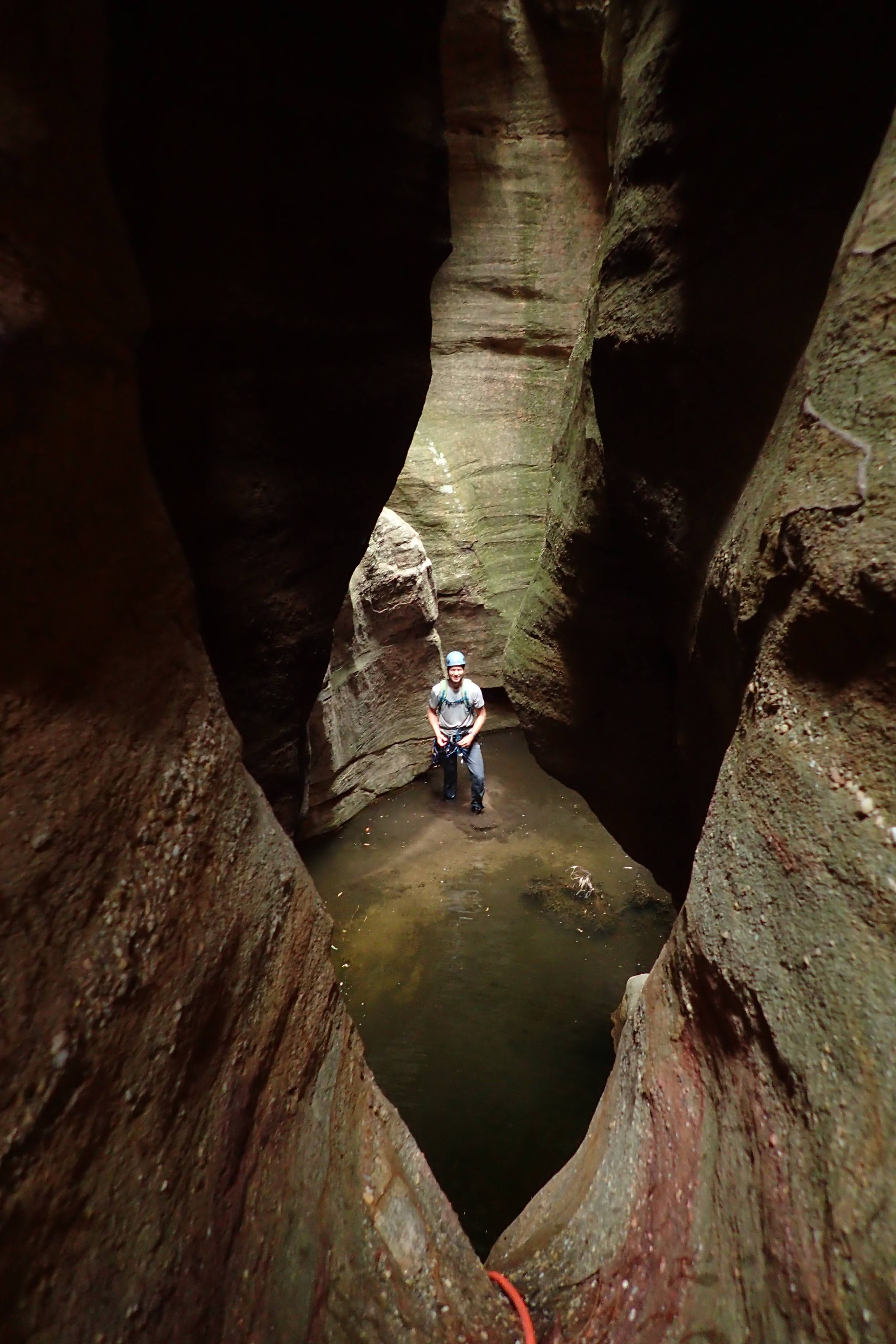 The fifth drop ended in Dirk’s Pool. Named so because he could stand whilst the rest of us were forced to swim in the murky rancid water.