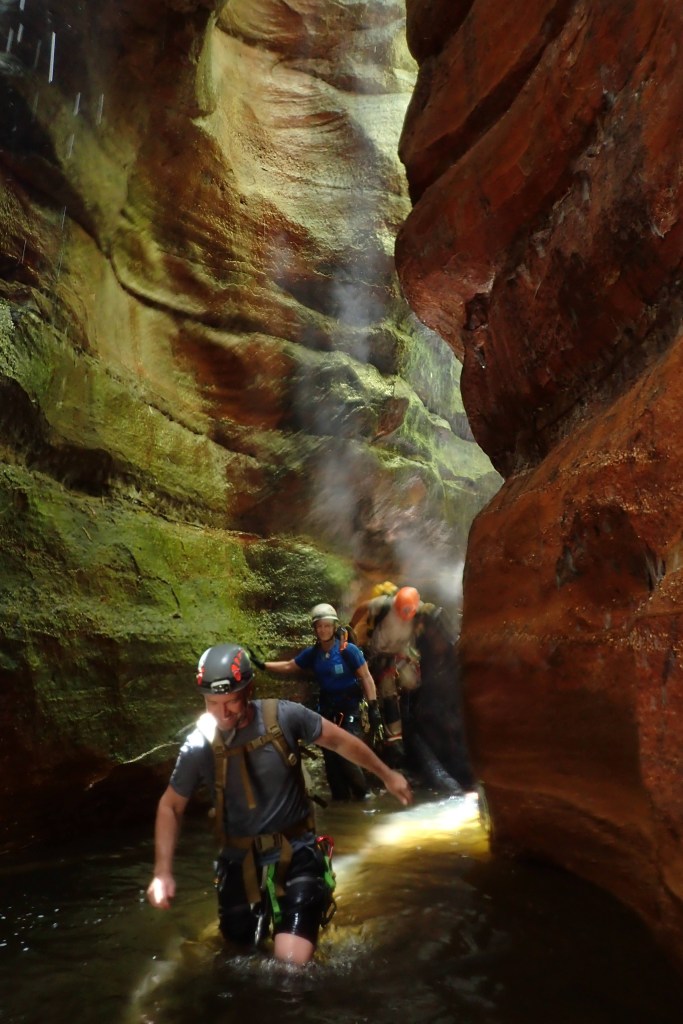 Peals of thunder crashed in the early morning. The storm was early. I rose when I heard some chatter developing, but like the others felt that my sleep had been cut a little short. The rain started. Breakfast happened and then a game of Rummiking though this particular version was named Rummikub. The only difference seemed to be that you couldn’t tag a 1 on the end of a 13… anyway… The game proved to calm and placate the clouds and blue soon spread across the sky. Canyon plans were soon voiced. Maybe Suspiria. Maybe Pipeline. In the end it was Blue Stains. I was on the fence about what to do. In the end I bailed and headed home. Contrary to the forecast, the weather held and was good for almost the whole day.